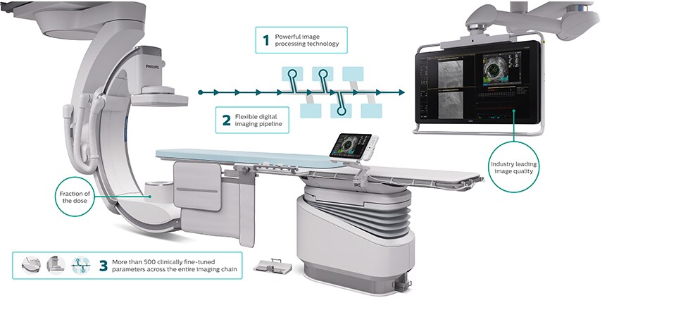 Our imaging technology ClarityIQ, combines advanced, real-time image noise reduction algorithms with state-of-the-art hardware. Together, they form a flexible digital imaging pipeline designed to perform individual image processing algorithms more efficiently. This unlocks superb visualization and significant dose reduction capabilities for healthcare facilities. ClarityIQ is available as an option on Azurion systems.